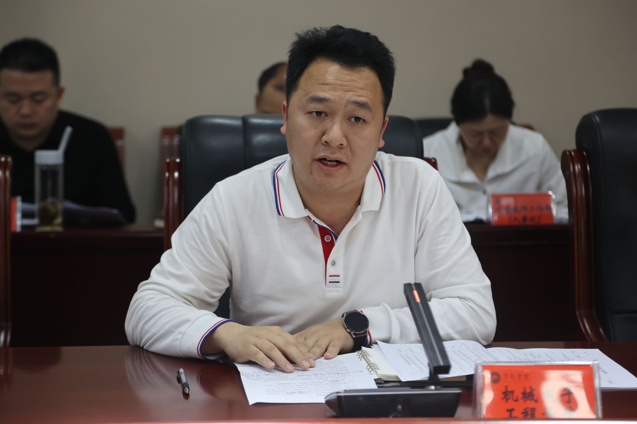 接下来,学工处处长陈敢、信息与计算机工程学院院长李希勇、机械电子工程学院院长李涛涛、招生就业处副处长刘晔进行了交流发言,小结了本单位前期审核评估准备工作,并提出了下一步打算。其他与会同志也进行了自由发言。