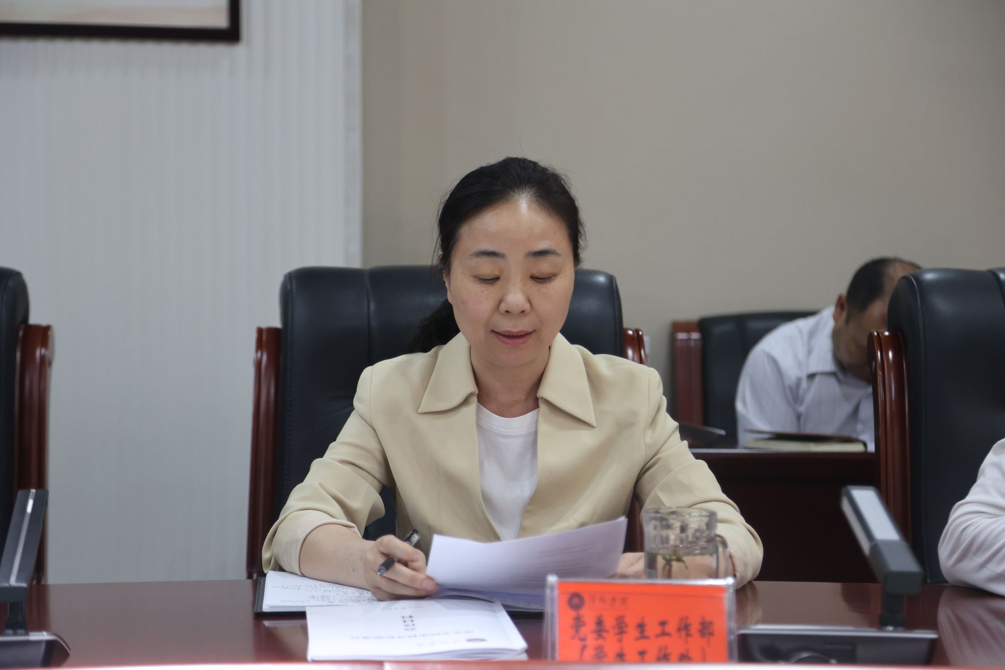 党委委员、统战部部长、教务处处长贺晓梅小结了评建办围绕审核评估所做的前期工作,并布置了审核评估下一阶段主要工作,宣读了审核评估专项小组的调整,部署了二级学院自评自建工作和巡礼活动。最后,对各部门、二级学院在审核评估工作过程中提出了具体要求。