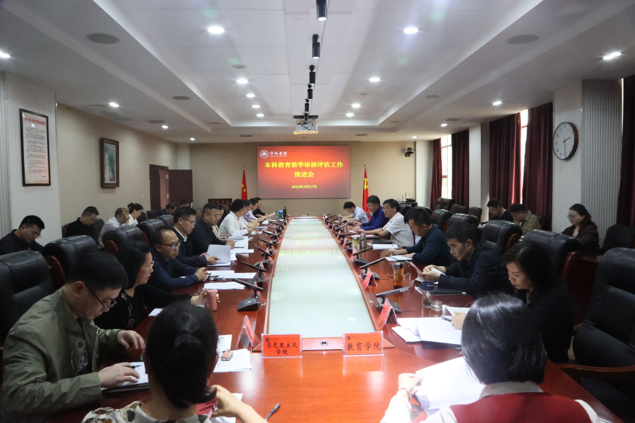 3月27日下午14:30在至善楼第一会议室,学校召开了本科教育教学审核评估工作推进会。全体在家校领导、各职能部门负责人、各二级学院院长、评建办全体成员参加了会议,副校长吴代赦主持会议。