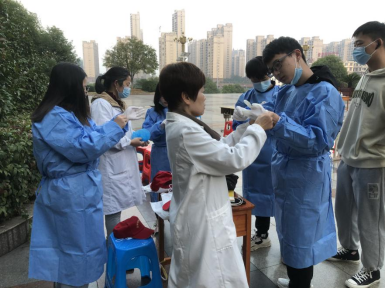 学工线全体人员狠抓工作作风,在学生中起到了模范带头作用。静态管理期间,他们24小时在学校待命。全员6点30抵达鼎新楼核酸检测点,严格落实核酸检测辅助工作。他们协助医务人员贴“试管码”、贴“转运箱码”,给“大白”擦护目镜,维持队伍秩序。11月7日,一名学生在不知情的情况下带走检测试管,导致15名学生核酸检测失效。一筹莫展之际,刚转运完上一批试管的党委副书记李孟华当即了解清楚情况,现场紧急分配学生电话给学工线教师,10分钟之内就将15名不同学院不同班级的学生召回重做核酸。全体辅导员坚持到核酸检测的最后一刻,协助医务工作者完成收尾工作。
