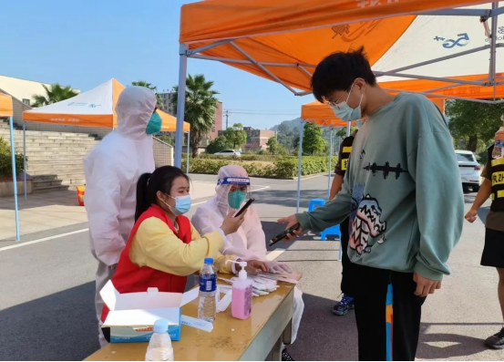 冬日的校园,那一抹红特别鲜艳,让人感觉特别温暖。那是校团委和二级学院团委的学生干部组成的志愿者团队。他们负责做好现场采样点布置,队伍秩序引导,协助扫码登记,提醒大家戴好口罩等工作,用实际行动保障每一项工作都按照防疫要求落实到位,协助核酸采样工作平稳有序进行,与“大白”共同筑起守护全校师生及工作人员健康的坚固防线。