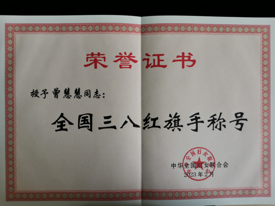 近日,全国妇联发布《关于表彰全国三八红旗手标兵、全国三八红旗手、全国三八红旗集体和全国巾帼建功标兵、全国巾帼文明岗、全国巾帼建功先进集体的决定》,我省有8人获评2022年度全国三八红旗手,6个集体获评2022年度全国三八红旗集体,beat365官网曾慧慧博士获评“全国三八红旗手”荣誉称号。
