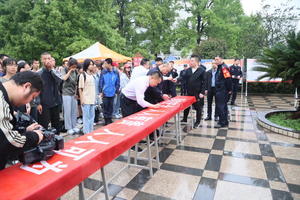 刘培圣宣布启动仪式正式开始。市相关单位工作人员通过五大要素、五对关系为师生现场详细讲解了总体国家安全观的核心要义,并号召广大青年学生要时刻保有“国家安全 人人有责 人人可为”意识,做维护国家安全的守护者,为实现中华民族伟大复兴中国梦贡献青春力量。启动仪式上,大家集体在横幅上签名,充分表达了广大师生誓做国家利益捍卫者、国家安全守护人的坚定信念。