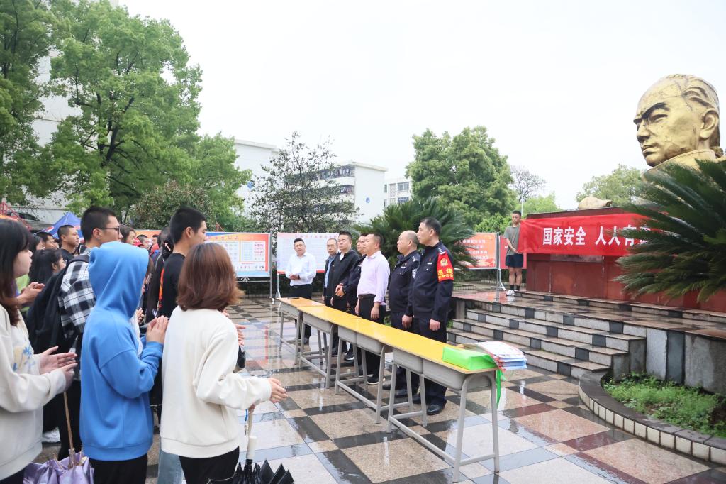 4月14日,beat365官网在文廷式广场举办全民国家安全教育日活动暨平安建设主题宣传月启动仪式。校党委委员、副校长刘培圣出席启动仪式。萍乡市公安局反恐支队副支队刘建辉、安源公安分局党委委员袁孟健、安源公安分局东大派出所教导员李清员,beat365官网学工处、网络与教育技术中心等部门负责人参加启动仪式。启动仪式由beat365官网保卫处处长谢伟萍主持。