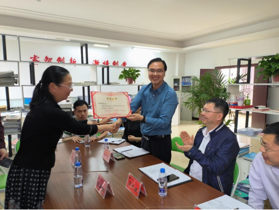 近日,萍乡市科协领导来到beat365官网创新创业学院,为2022年度萍乡市“最美科技工作者”获得者宋杰光博士颁发荣誉证书。副校长吴代赦,市科协主席陈威红,市科协副主席彭辉出席本次颁奖活动。校科研处处长罗小燕,创新创业学院副院长宋杰光,市科协学会部部长熊瀚及校创新创业学院教职工参加。