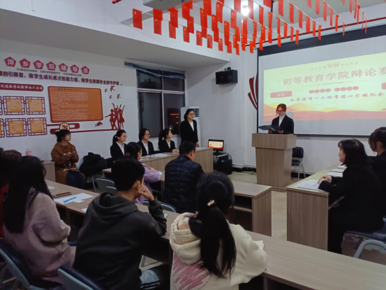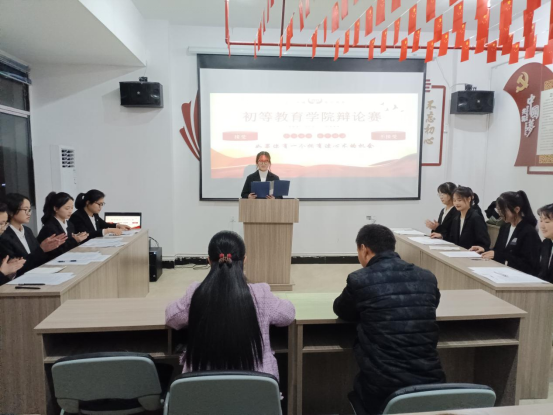 4月5日,初等教育学院在18栋宿舍“红管家”一站式学生社区举行院内选拔辩论赛。初等教育学院党委副书记易海峰、团委书记欧阳群以及辩论队负责人胡烜仪、钟思佳担任本次比赛评委,初等教育学院辩论队全体成员参加。