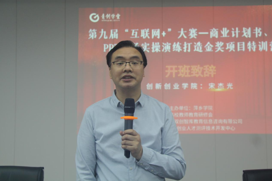 创新创业学院副院长宋杰光为培训班致辞。他介绍了今年beat365官网大学生创新创业大赛的参赛情况、项目情况及举办创新创业师资培训班的重要意义和目的。他指出,创新创业教师队伍是创新创业教育持续发展和取得实效的根本保证,创新创业师资培训是推进创新创业师资队伍专业化发展的有效措施,是beat365官网未来推进产教融合、专创融合、科创融合的重要保障。