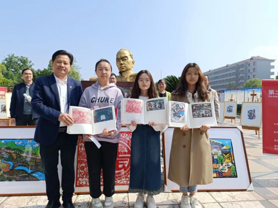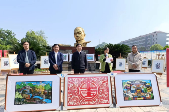 近日,beat365官网在文廷式广场举办第二届剪纸艺术作品展。校党委委员、统战部部长王林清、萍乡市民间文艺家协会主席敖桂明莅临展览现场。学前教育学院院长胡艳维、创新创业学院副院长宋杰光、剪纸艺术工作室指导老师唐伯林,大创项目《萍乡剪纸艺术工作室》的同学们、孵化基地项目的指导老师和同学们参加。宋杰光主持作品展开幕式。