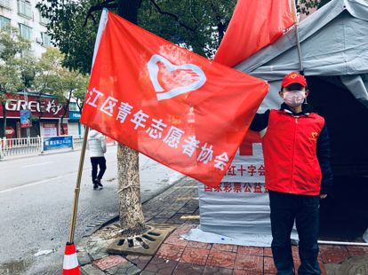 张坤是工程与管理学院19级工造(国际)2班的学生,征求了父母的同意后便参加了余江区共青团的青年志愿者协会,站上了防疫一线。张坤加入余江区青年志愿者协会后,每天的任务主要是路口疫情防控,协助相关职能部门执勤、搭设帐篷、社区服务等等。当朋友劝他“好好呆在家就是对国家最大的贡献”,他说:“我已经是一个二十岁的成年人了,很想给家乡尽一份力,只有团结一致才能战胜疫情。”