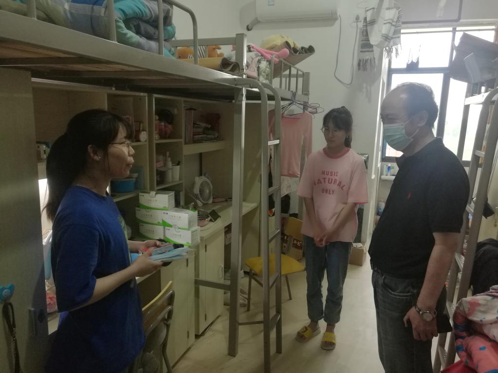 校领导们来到学生宿舍,实地查看学生住宿及清洁消毒情况。党委书记陈金印亲切询问学生的身体状况,生活上有什么需求,告知他们学校已经在与各大企业联系就业事项,希望同学们做好近期在校学习生活和就业的准备,并严格按照学校的防控要求,落实未经批准不得擅自离校,要将萍院学子的良好形象展现出来。陈金印还告诉同学们,学校已经对教学楼、宿舍、食堂、图书馆等地区全面消毒,大家做好自我防护,安心学习和生活。