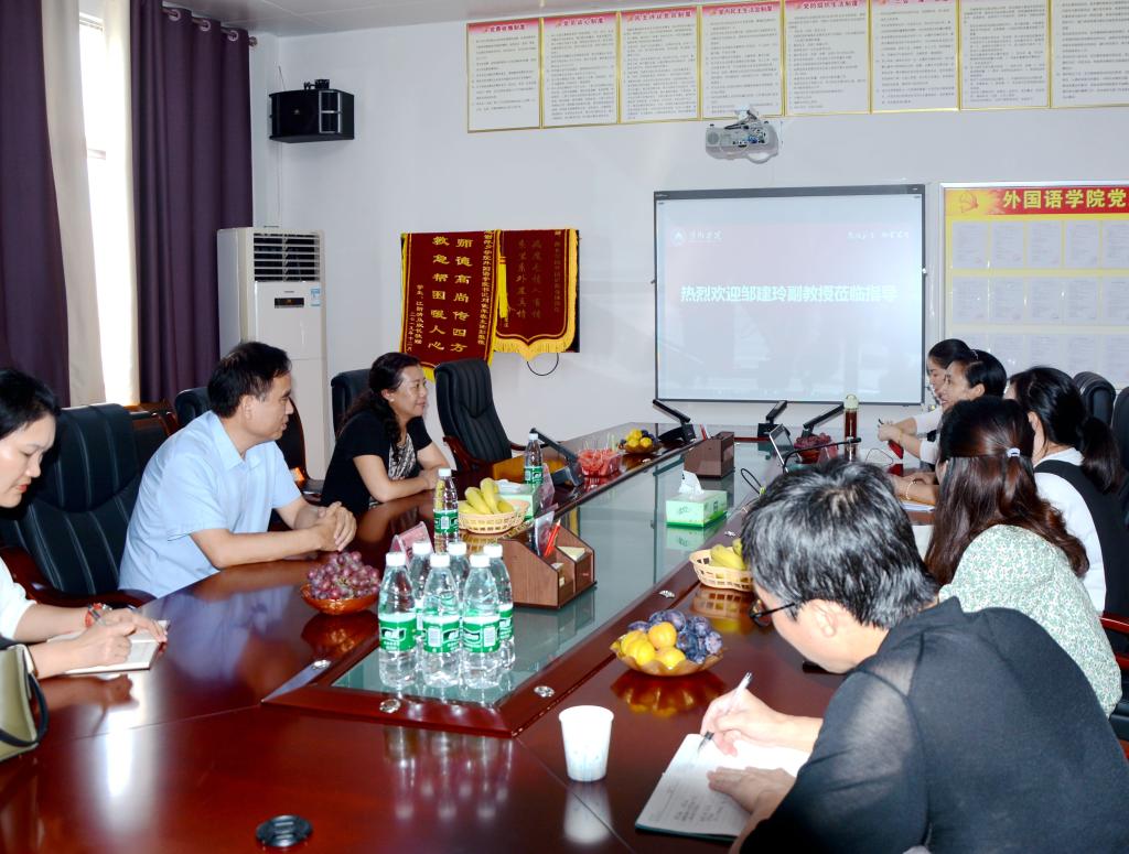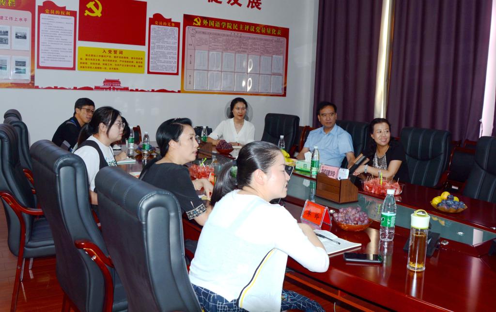 近日,上海理工大学邹建玲副教授莅临外国语学院,以“加强学科建设,推进学校向应用型本科高校转型发展”为主题进行交流指导。校党政办公室主任向绍萍、外国语学院院长欧阳咏梅、副院长卓玲及各教研室主任参加交流、座谈。交流座谈会由欧阳咏梅院长主持。