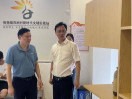 陈永国一行在荷尧镇党委书记黄新亮的陪同下参观了荷尧镇新时代文明实践中心以及湘东区荷尧镇人民政府,随后进行合影留念。