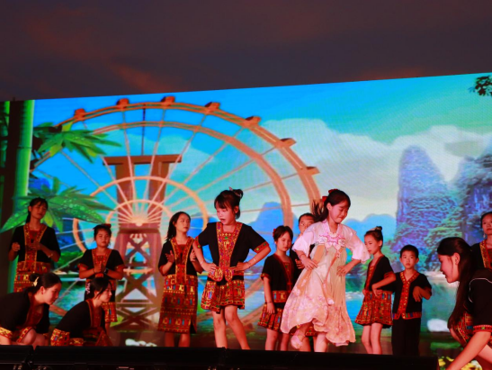 华灯初上,人潮涌动,“同心共绘乡村景 同行共赴民族情”民族大团结晚会在水鼓表演《鼓舞飞扬》中震撼开场,整场晚会用语言诉说奋进讲述发展,以歌舞舞出热情唱响团结,借成果展、T台秀推介文化展现融合。朗诵节目《少年中国说》于师生一问一答中诵读中华经典、激荡精神力量;访谈节目《“冲头”有约》站在过去、今日与未来,讲述了黎族、布依族、汉族各族人民共同团结奋斗、共同繁荣发展的“冲头”故事;黎族《打柴舞》、傣族舞《哈尼宝贝》、维吾尔族舞《布娃娃》、志愿者群舞《向快乐出发》等舞蹈节目,舞出各族人民的积极向上、热情洋溢;葫芦丝独奏《欢歌炫舞》在声声悠扬中再现能歌善舞的藏族人民欢聚一堂的美好景象;艺术成果展示节目展出了冲头村小朋友在志愿者老师们开设的中华传统文化课堂中所学习创作的“民族团结”主题书法、剪纸、绘画等作品;多巴胺T台秀是冲头村山青水绿桃粉稻黄与各民族服装独特色彩元素的碰撞,体现出民族团结与乡村振兴融合发展;大合唱《名字叫中国》以黎语、朝鲜语、藏语、壮语、汉语共同唱响爱国情怀,为晚会画上圆满句号。晚会集结了志愿服务团全体成员、冲头民族村村民、良坊村村民,节目设置融合了朗诵、艺术成果展、少数民族舞蹈、访谈节目、民乐演奏、合唱、T台秀等各类形式,形式丰富、内容精彩,吸引了来自各地的观众莅临现场,也引发了文明江西等媒体争相报道。
