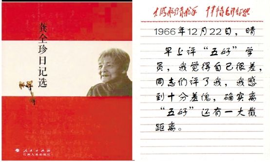 其中有两篇日记让我记忆特别深刻,其一,她在日记中写道:1966年12月22日,晴 早上评“五好”学员,我觉得自己很差,同志们评了我,我感到十分羞愧,确实离“五好”还有一大截距离。
