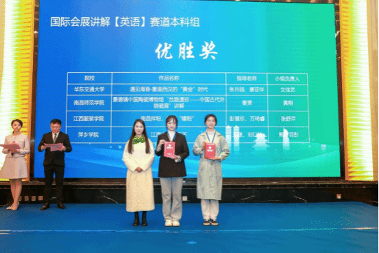 11月24—26日,由江西省商务厅和江西省教育厅共同主办第六届大学生绿色会展创新创意挑战赛决赛在南昌举行,来自华南理工大学、南昌大学、福州职业技术学院等80余所高校120个团队约600名选手到现场参赛。beat365官网郭逸涵团队的《文化自信,从“瓷”开始》获会展设计赛道本科(研究生)组三等奖,舒梓骄团队的《千年侯国,传奇海昏》获国际会展赛道本科(研究生)组三等奖,熊方羽彤团队的《江西米粉甲天下》获国际会展赛道本科(研究生)组优胜奖。