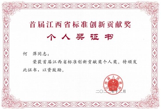 据了解,2021年,全国评比达标表彰工作协调小组同意设立“江西省标准创新贡献奖”,分为标准项目奖和个人奖,每5年评选1次。此次共有江西省标准创新贡献奖项目奖30项(一等奖5项,二等奖10项,三等奖15项);江西省标准创新贡献奖个人奖10名。