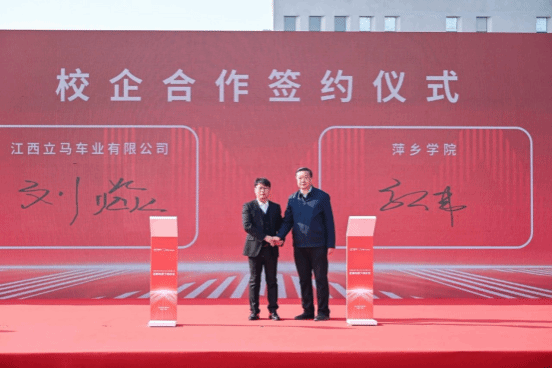 活动现场,星星科技江西立马车业有限公司与江西应用工程职业学院签订了校企合作协议。星星科技江西立马车业有限公司向萍乡经开区福田镇、彭高镇、光丰街捐赠20辆电动摩托车。