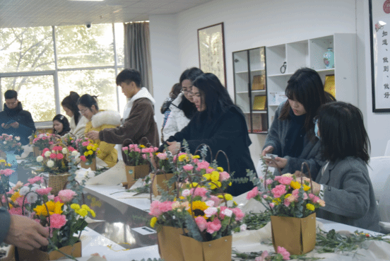 本次活动以“花漾新年、情暖学工”为主题,让辅导员老师通过插花来点缀生活之美,以崭新的面貌迎接新年的到来。 本次活动,增进了老师之间的交流互动,使老师从中愉悦身心,陶冶情操,同时促进了辅导员积极探索大学生美育教育新路径,不断提升专业水平及职业能力。