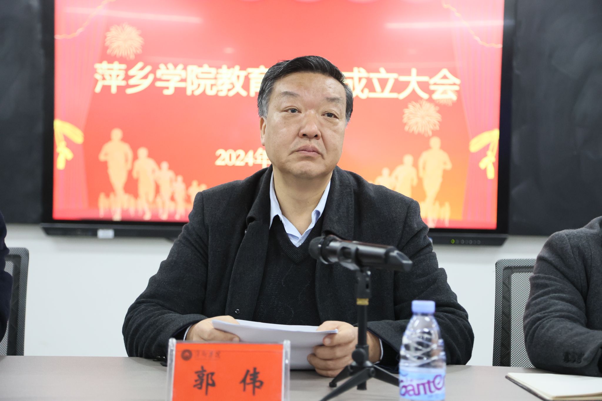 郭伟在主持中表示,学前教育学院和初等教育学院合并为教育学院是学校高质量发展关键时期作出的重要改革举措,是当前学校教育事业发展的必然趋势。合并有利于进一步优化整合学校资源,增强学科专业实力,凝聚改革发展合力,提升办学水平,加快转型发展建设步伐,更好地服务经济社会发展。他指出,新组建的教育学院党政班子要旗帜鲜明讲政治、顾大局;要坚定不移讲团结、聚合力;要持之以恒讲学习,提素养;要履职尽责讲担当、做表率;要真抓实干讲作风、求务实;要筑牢底线讲廉洁、树正气。