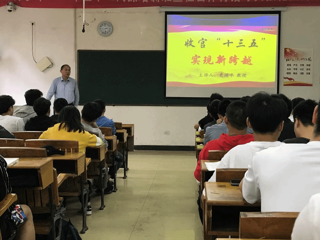 课上,史焕平以“收官‘十三五’ 实现新跨越”为主题,从决战脱贫攻坚取得决定性胜利,贯彻新发展理念、推进高质量发展迈出重要步伐,人民群众获得感、幸福感、安全感显著增强,中国共产党领导和我国社会主义制度优势进一步彰显四个方面全面回顾了过去“十三五”期间取得的辉煌成就。课程内容丰富,深入浅出,数据详实,贴近学生思想实际,具有很强的针对性和现实性,使他们深受启发、获益匪浅。