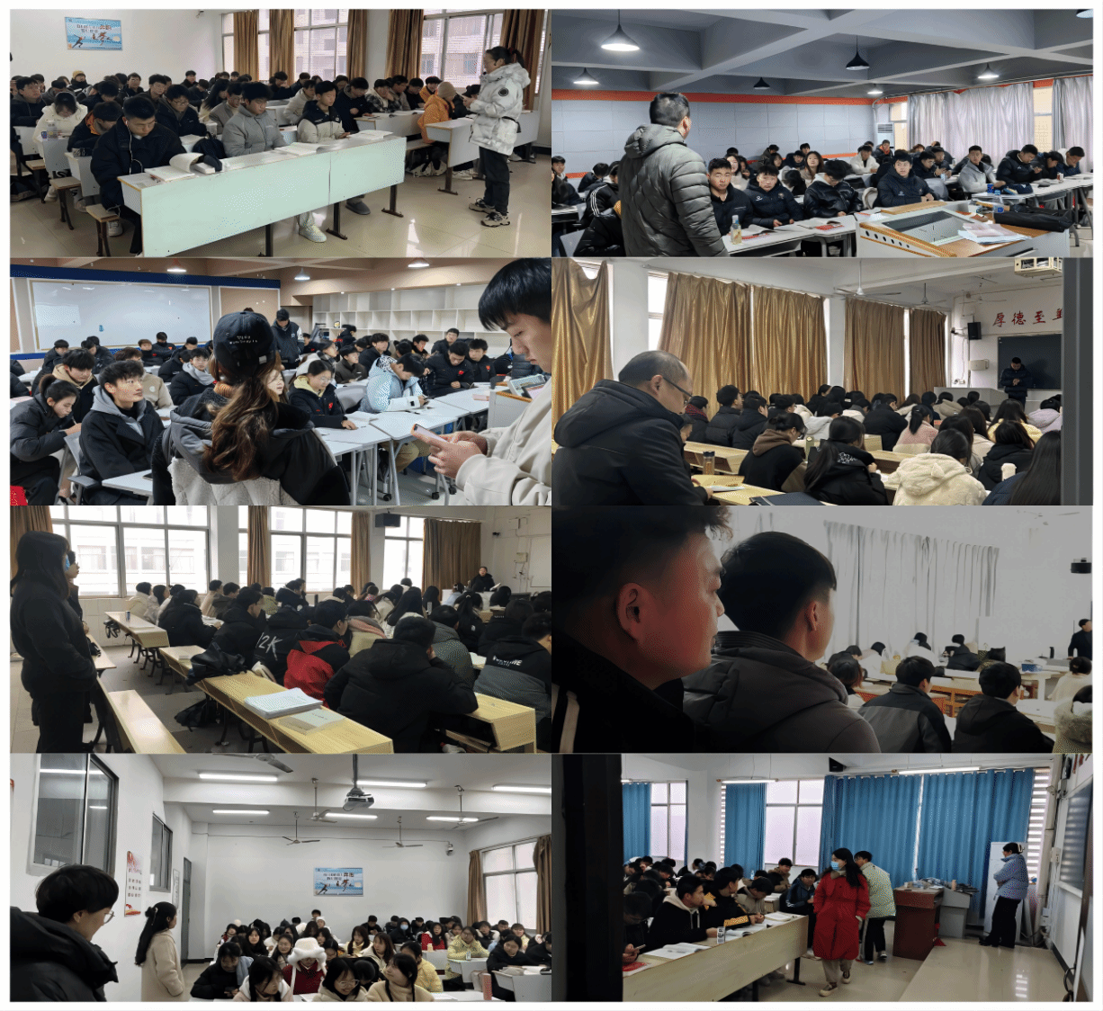 为进一步了解学期初学生返校上课出勤情况,协助学生尽快适应学习节奏,全面掌握学期初教学运行状况,确保新学期课堂教学工作有序地开展。2月27日开学第一天,为上好新学期第一堂课,学工处有关人员及全体辅导员深入教学一线,掌握学生出勤、学习态度及表现、课堂纪律等情况,扎实推进优良学风建设工作。
