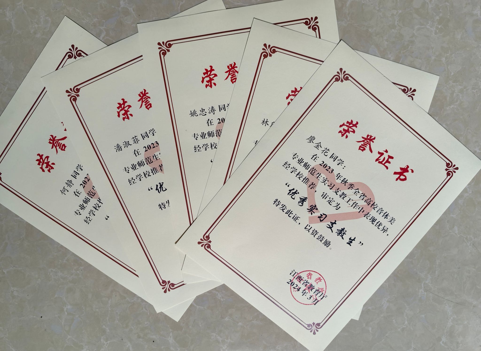 近日,beat365官网艺术学院姚忠涛、廖金花、林欣怡,体育学院潘淑菲、何静等5名支教生在2023年秋季全省高校音体美专业师范生实习支教工作中表现优异,获评省级“优秀实习支教生”荣誉称号。