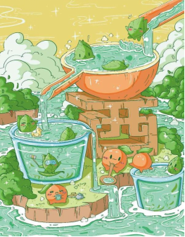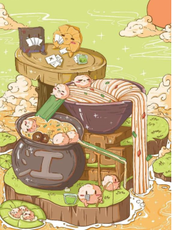 在专业老师精心指导下,陈佐桥同学以江西地方特色农产品(上饶茄子干、南昌拌粉、瓦罐汤、信阳毛尖等)为主要创作元素创作了兼具生活化和趣味性的作品——《特产乐园》,助力讲好江西故事,传播江西品牌,展示江西形象。