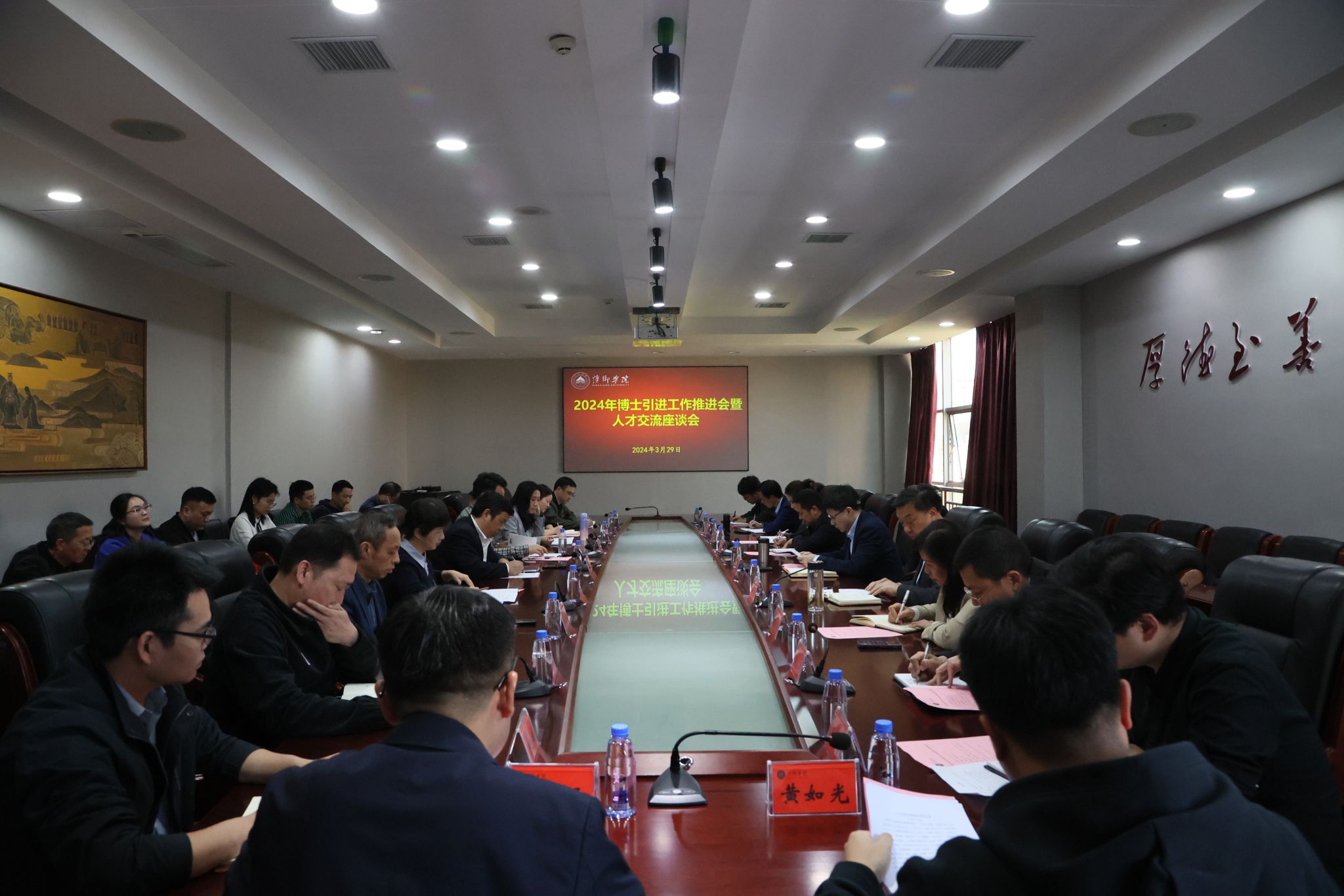为深入贯彻落实党中央《关于全面深化新时代教师队伍建设改革的意见》,持续学习贯彻党的二十大精神中关于教育、科技、人才“三位一体”决策部署,不断提升学校师资队伍建设水平,3月29日下午,beat365官网在至善楼第二会议室召开博士引进工作推进会暨人才交流座谈会。会议以“高层次人才引进驱动学校高质量发展”为主题,安排部署2024年度高层次人才引进重点工作并与高层次人才代表进行了交流。校长刘林芽,校党委委员、副校长郭伟,校党委委员、统战部部长贺晓梅出席会议。党政办、人事处、科研处、计财处、后勤处负责人及二级学院院长参加会议。座谈会由郭伟主持。
