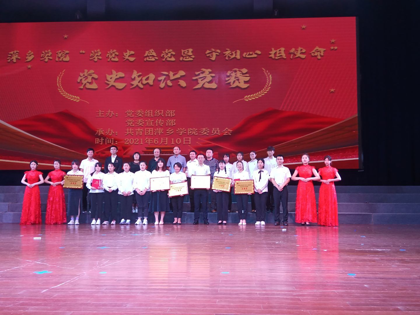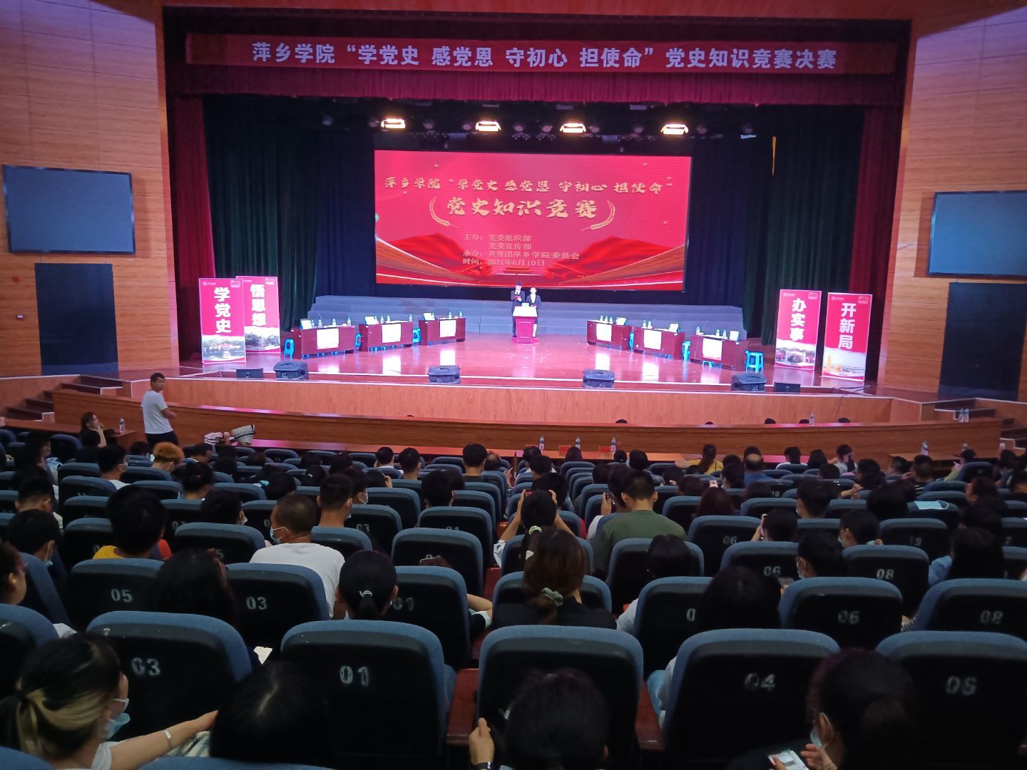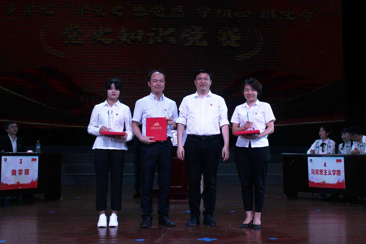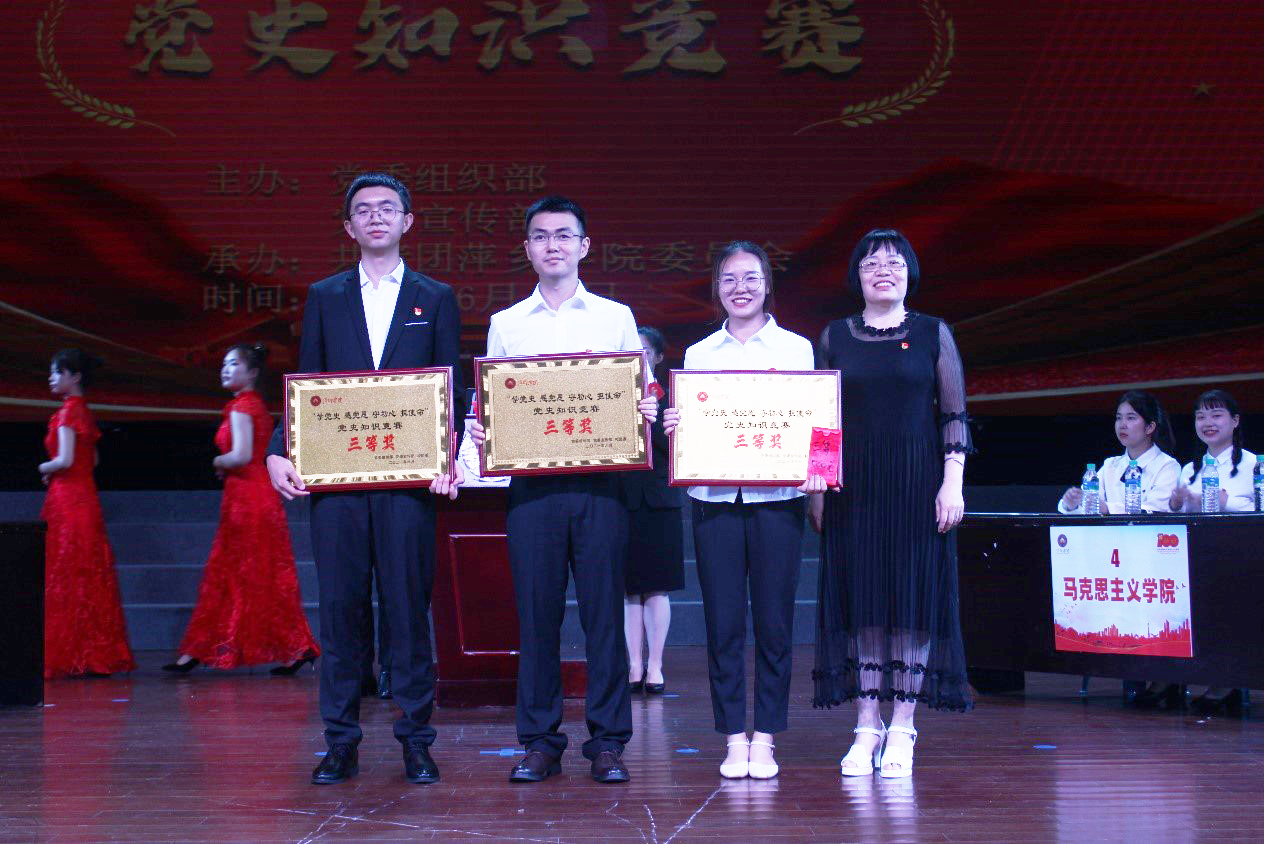 经过初赛笔试选拔与突围,人文与传媒学院、初等教育学院、商学院、马克思主义学院、体育学院、外国语学院6支队伍脱颖而出站在了决赛现场的舞台上。此次党史知识竞赛分为个人必答、团队必答、团队抢答、团队风险四个环节,比赛内容涉及中国共产党历史、新中国史、改革开放史、社会主义发展史、中国共产党江西省历史、中国共产党江西省萍乡市历史、党章、党内法规等内容。
