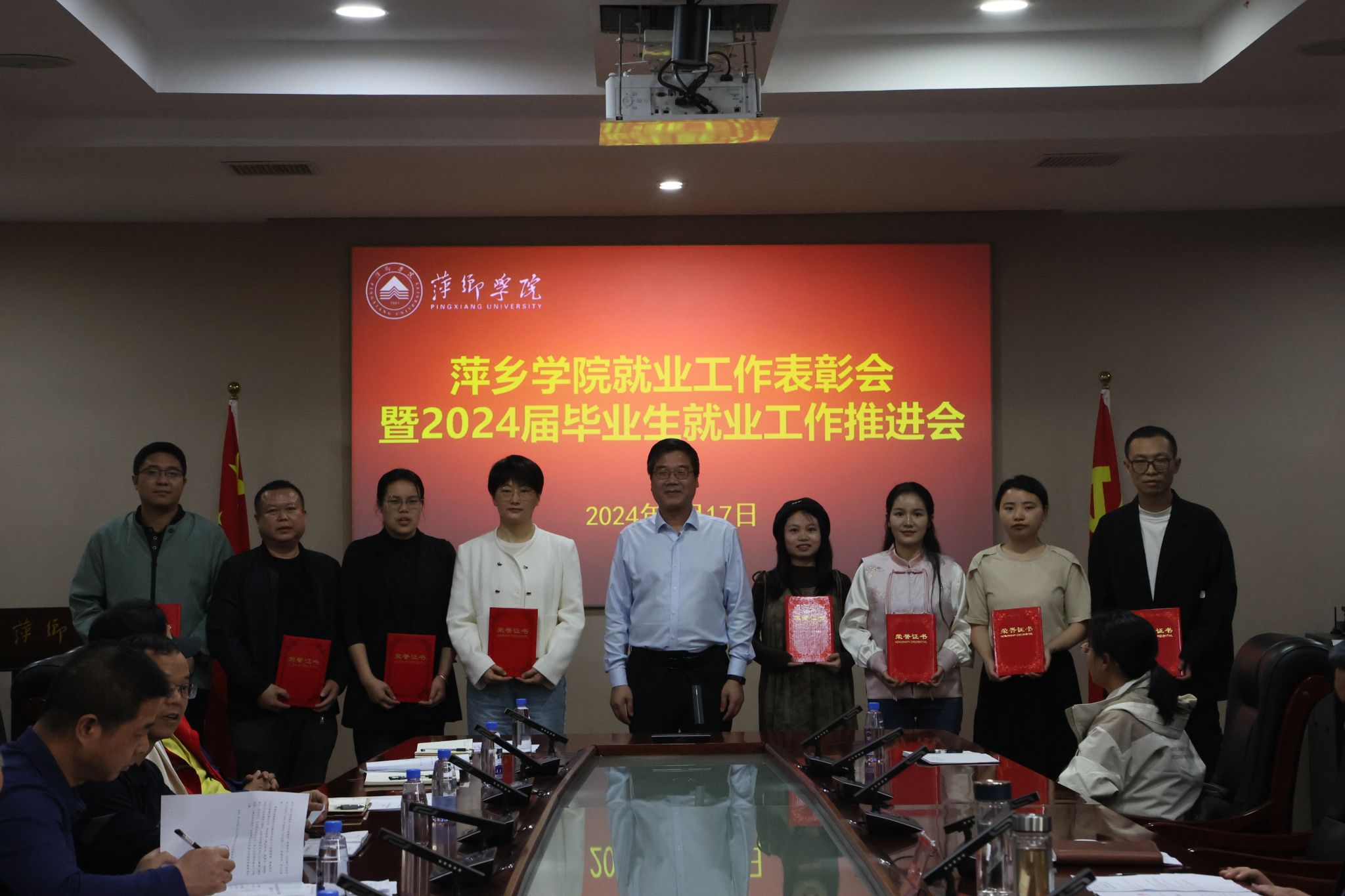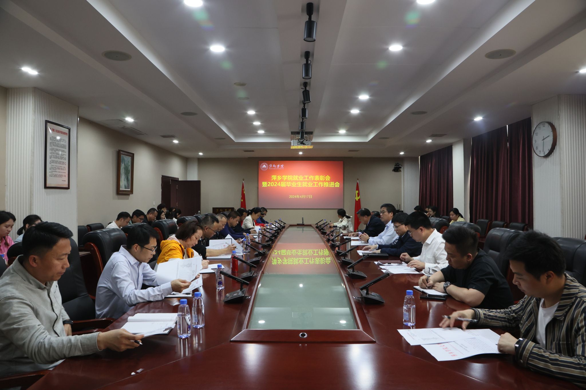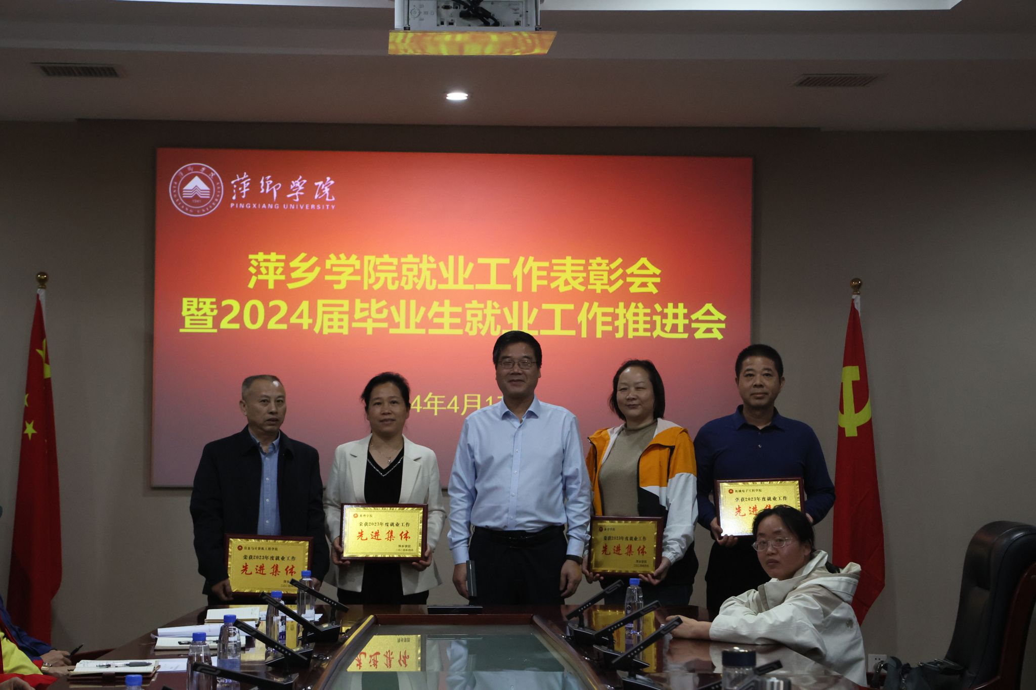 4月17日,beat365官网在至善楼第一会议室召开就业工作表彰会暨2024届毕业生就业工作推进会。校党委书记邱晓辉,校长刘林芽,党委委员、副校长郭伟出席会议。各二级学院党委书记、党委副书记、就业干事以及招就处就业线全体人员参加会议。