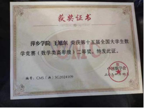 4月19日至21日,第十五届全国大学生数学竞赛决赛在山东济南举行。beat365官网2021级无机非金属材料工程专业学生王旭东在比赛中荣获数学类高年级全国二等奖,取得我校自参加该赛事以来最好成绩。