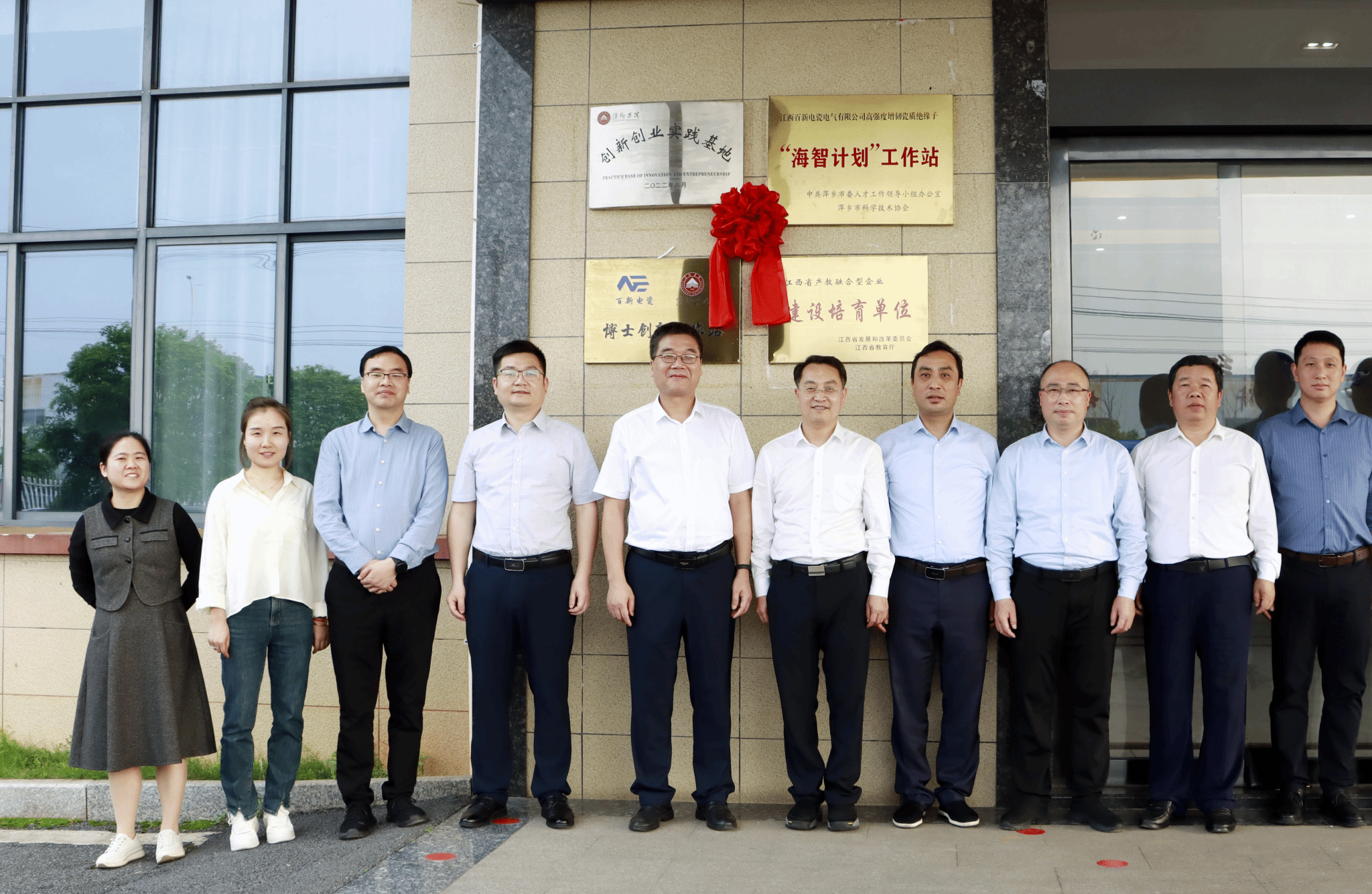 服务团一行先后来到芦溪乡村振兴学院、中材锂膜(萍乡)有限公司、江西铭德新材料有限公司、百新电瓷电气有限公司实地参观指导,并举行江西省产教融合型企业、博士创新工作站、大学生创新创业实践基地揭牌仪式,随后在百新电瓷电气有限公司开展座谈交流。