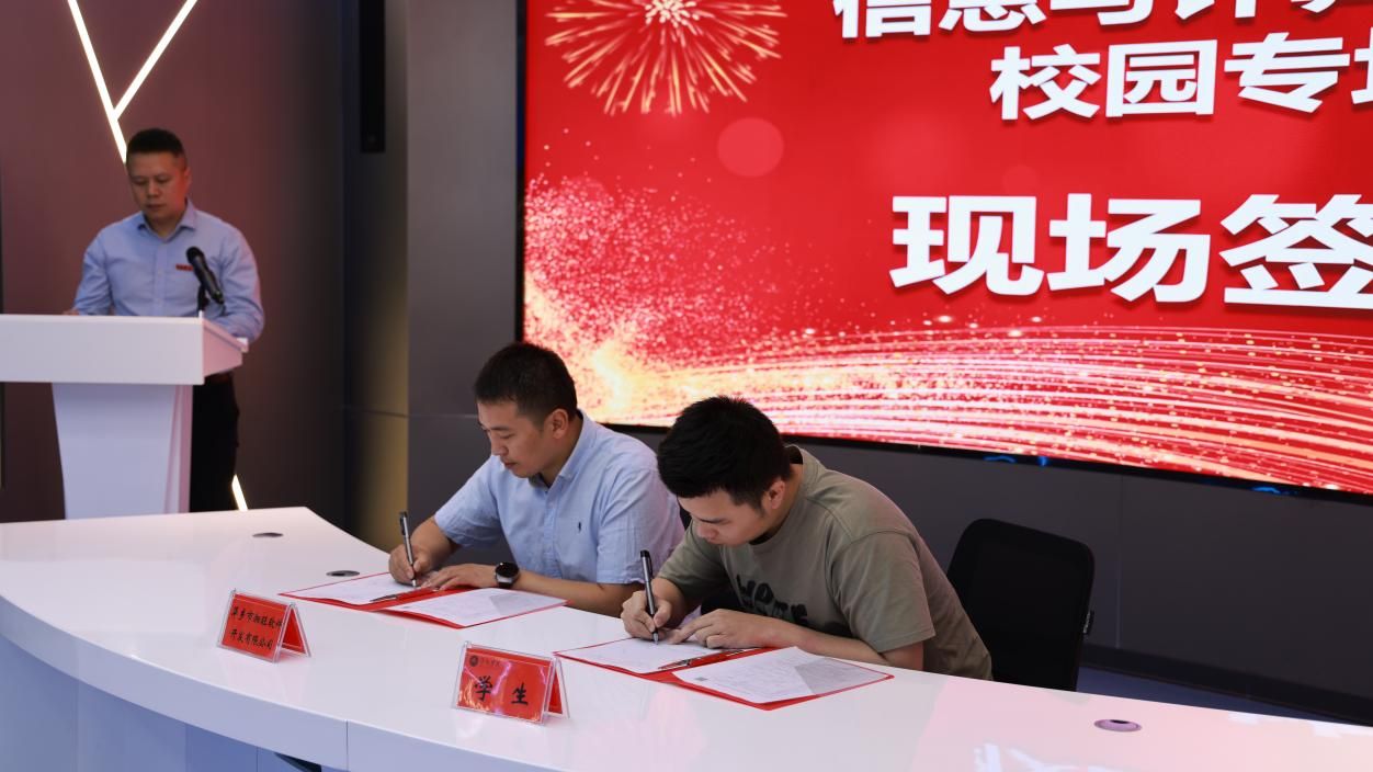 招聘会结束后进行了现场签约,邱晓辉、郭伟共同见证。