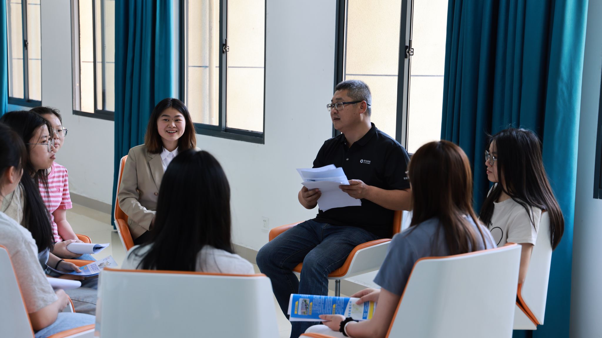 座谈会结束后,各企业开展了招聘宣讲和招聘面试,现场气氛浓厚。邱晓辉、郭伟一行深入现场了解用人单位招聘情况和毕业生求职情况,鼓励毕业生积极了解就业形势和相关行业的用人需求变化,合理确定求职预期,抓住本次校园专场招聘机会,积极求职应聘。