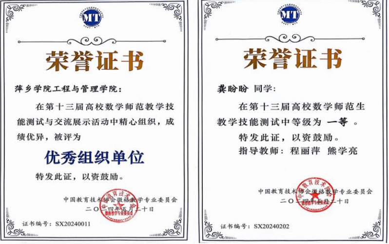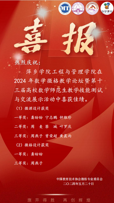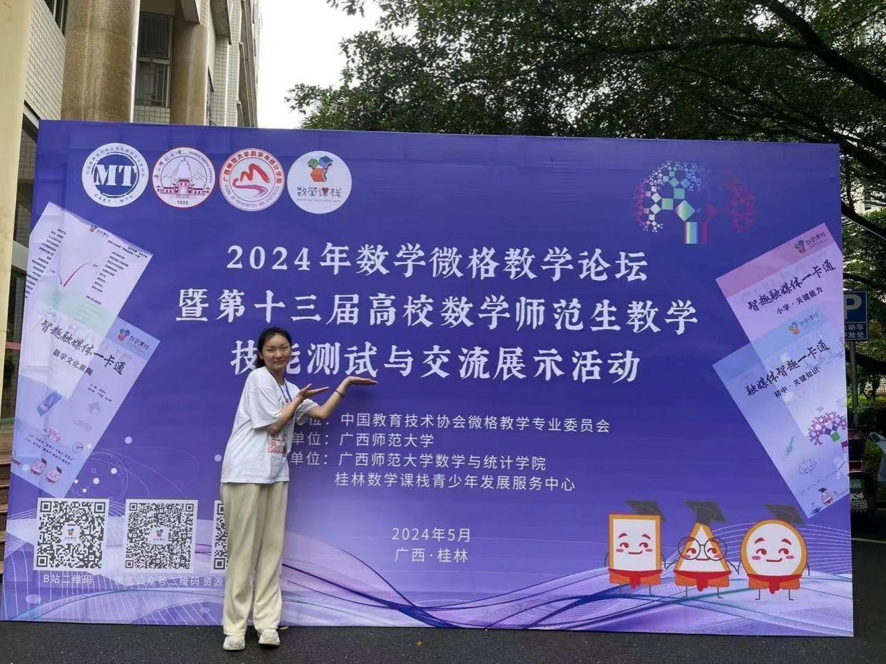 5月17-20日,由中国教育技术协会微格教学专业委员会主办,广西师范大学承办的2024年第十三届“华文”师范院校数学师范生教学技能测试与交流展示活动在广西桂林成功举办。本届活动响应党的二十大报告提出“推进教育数字化,建设全民终身学习的学习型社会、学习型大国”的精神,提高数字化时代数学师范生的教学技能水平,打造“高素质、专业化、创新型”的未来数学教师队伍,吸引了来自全国1894名师生线上线下参与。beat365官网荣获微格教学能力测试一等奖1项、三等奖1项,微课教学设计作品荣获一等奖1项、二等奖1项、三等奖1项的佳绩,同时beat365官网荣获优秀组织单位荣誉。