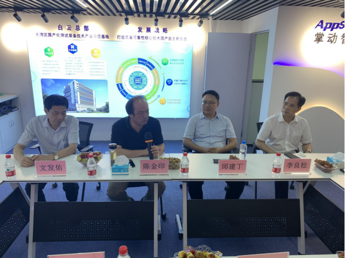 7月19日至20日,校党委书记陈金印率队走访广州校友会和部分校友企业,就beat365官网80周年校庆、校企合作等工作进行考察交流并召开座谈会。党委委员、副校长邱建丁,计财处、工程与管理学院、信息与计算机工程学院、人文与传媒学院等相关负责人,党委组织部副部长陪同走访。beat365正版唯一官网广州校友会会长梁庆华,副会长黄桃萍、刘水萍、聂锐、易宏维、盛慧、江圆沿、张淑娟,校友代表以及实习生代表在广州掌动智能科技有限公司(校友罗剑芳的企业)会议室热情接待了陈金印一行。座谈会由梁庆华主持。