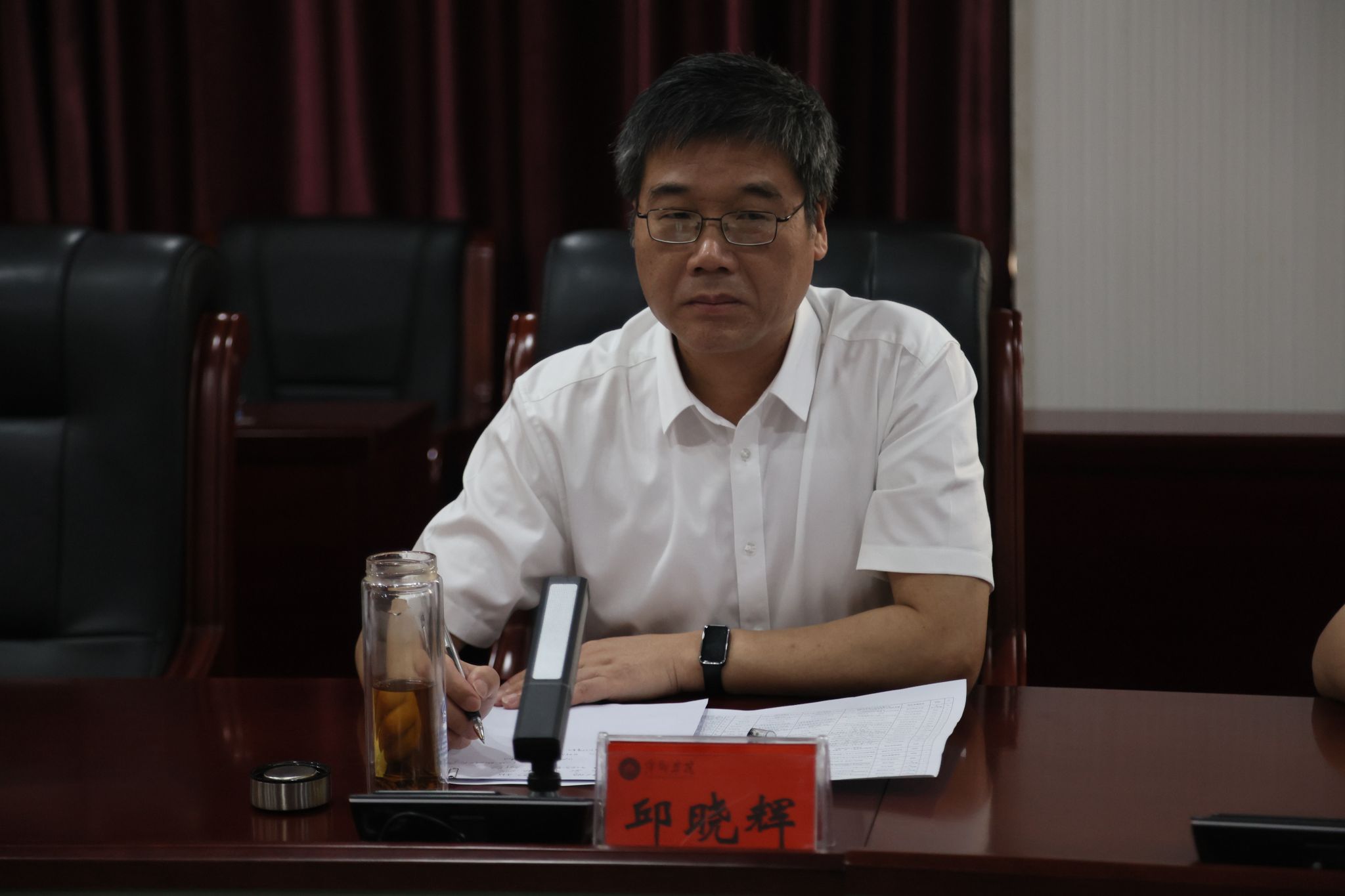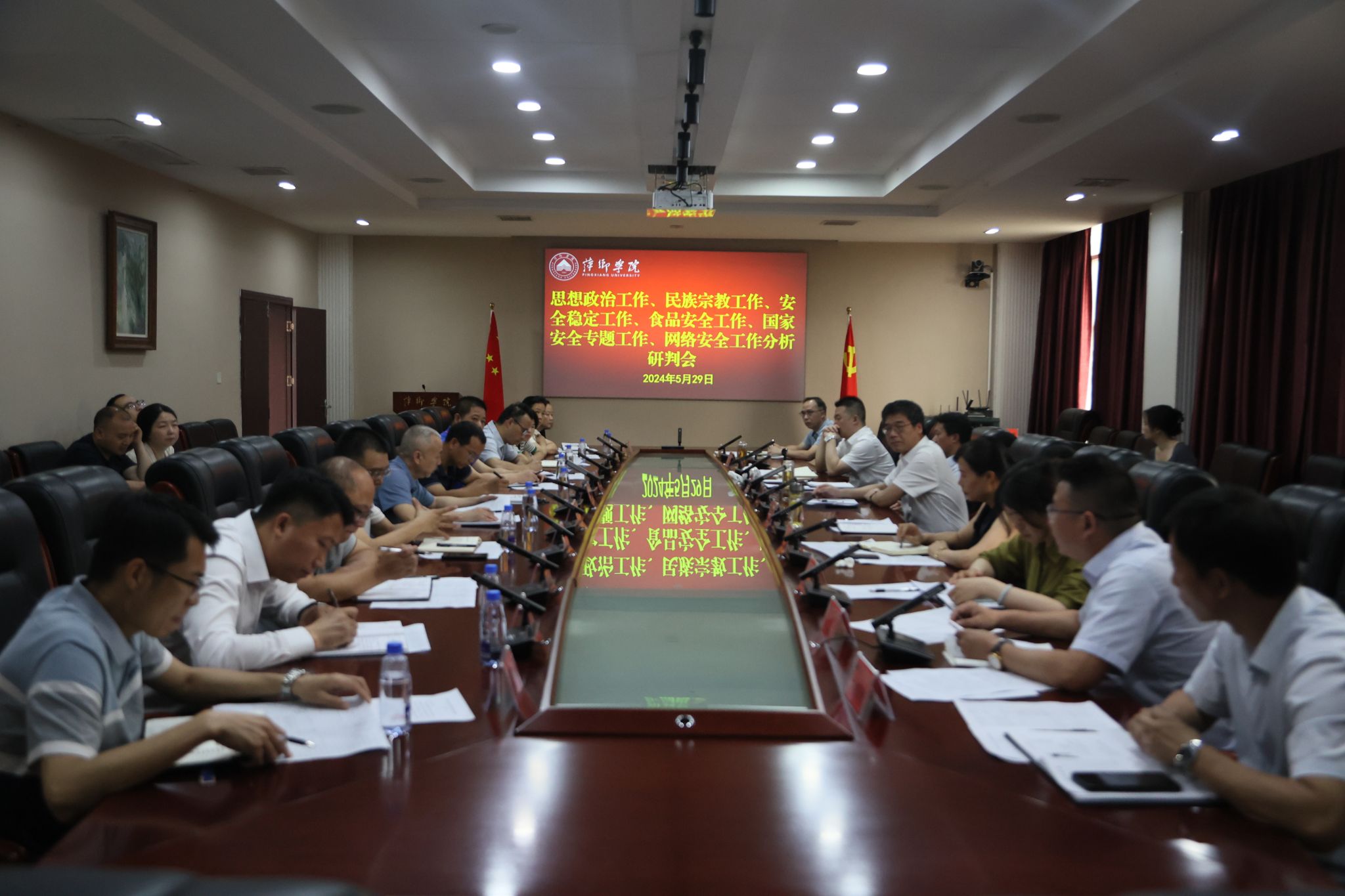 5月29日,beat365官网在至善楼第一会议室召开思想政治、民族宗教、意识形态、安全稳定等工作分析研判会。校领导邱晓辉、王林清、曾敏、贺晓梅出席会议。人事处、学工处、保卫处、后勤处等相关部门负责人以及二级学院党委书记参加会议。会议由校党委书记邱晓辉主持。