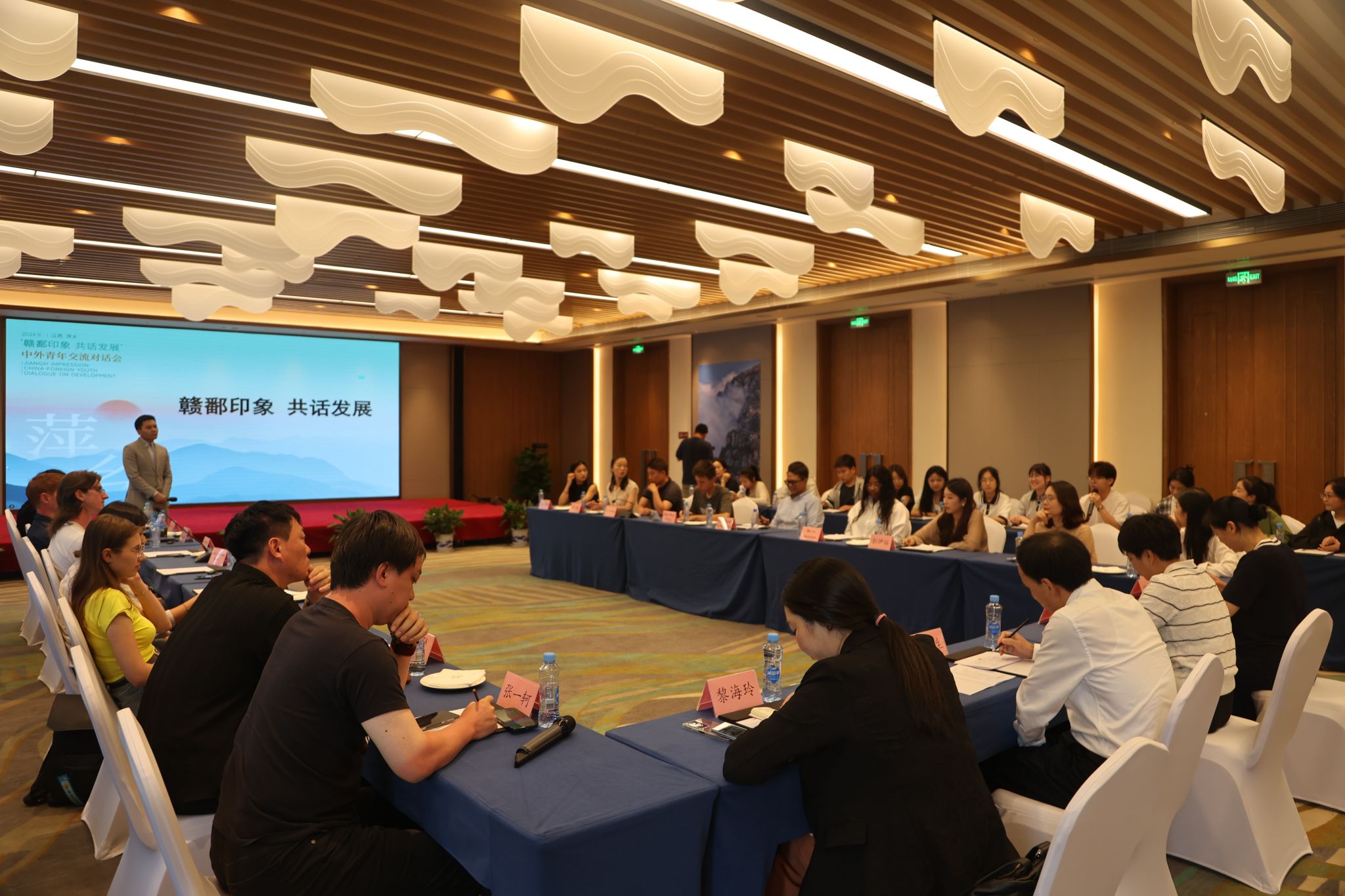 5月31日,beat365官网国际教育与交流中心主任黎海玲带队,组织菲律宾教师Joey Bataan Delos Arcos、纳米比亚教师Maria Amutenya、李婕老师和外国语学院师生15人赴武功山下桃园山居酒店参加江西省“武功山下 萍水相逢——第三只眼看中国 打卡魅力江西”系列活动之“赣鄱印象 共话发展”中外青年交流对话活动。