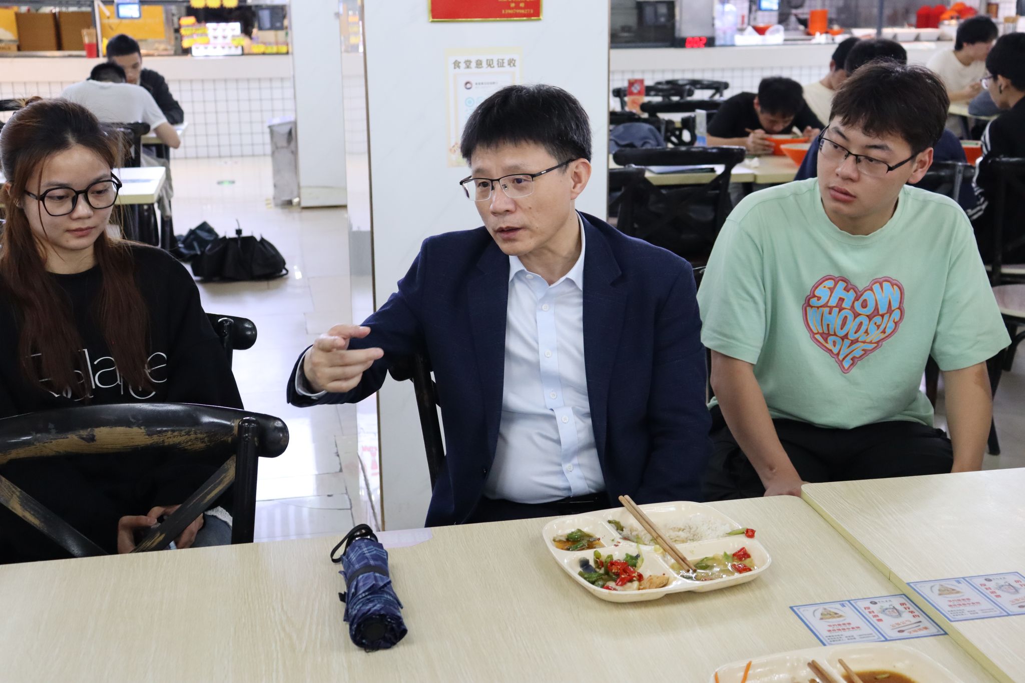 会后,刘林芽一行前往第一食堂与学生共同进餐,餐后前往学生宿舍参观,现场就学生提出的住宿条件、生活安排等问题进行了回复和提出了解决方案。