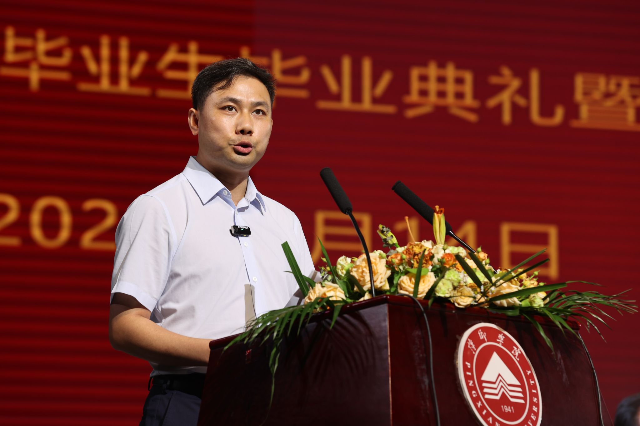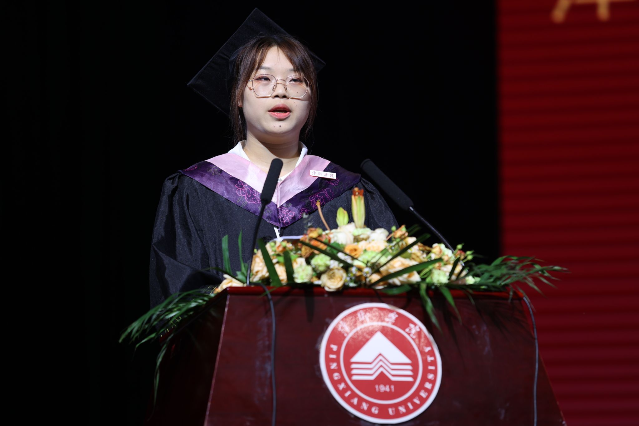 典礼上,材化学院秦梦黎博士、校友代表邹明章、毕业生代表游芷珺、非毕业生代表赵学森分别发言,抒发了感恩母校的真挚情感,表达了对毕业生们的诚挚祝福。