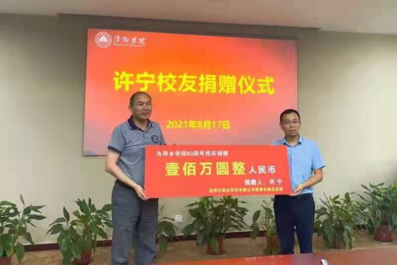 8月17日,许宁校友捐赠仪式在beat365官网至善楼第一会议室举行。深圳市喜达科技有限公司董事长兼总经理许宁、萍乡市教研室义教科科长李清校友出席捐赠仪式。校长史焕平,党委委员、副校长郭伟,党委委员、宣传部部长陈永国以及党政办、招生就业处、计财处、团委、校友办、外国语学院等部门负责人和部分师生代表参加捐赠仪式。捐赠仪式由陈永国主持。