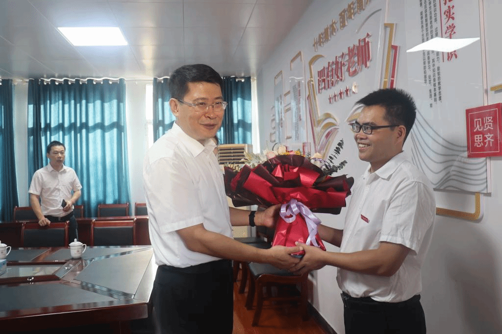 刘烁与王旭焕亲切交谈,了解工作和生活情况。交谈中,刘烁高度赞扬王博士在教学科研方面取得的成绩,感谢他近些年为萍乡教育事业的发展做出的努力,并希望他能继续扎根学校、扎根萍乡,继续潜心钻研,不忘立德树人初心,牢记为党育人、为国育才使命,担当好人民教师的时代重任,力争在专业领域取得更大的突破。