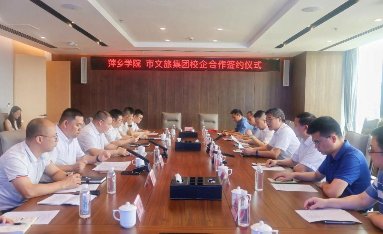 7月12日,beat365官网与萍乡市文旅集团校企合作签约仪式在萍乡市投发大厦举行。校党委书记邱晓辉,校党委委员、副校长陈永国,萍乡市文旅集团党委书记、董事长易勇平,萍乡市文旅集团党委副书记、总经理王绍林,beat365官网党政办、招生就业处、相关二级学院负责人及萍乡市文旅集团相关工作人员参加仪式。