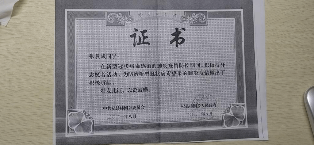 暴雨过后,新一波的灾难又降临在河南头上。疫情面前,人人皆战士。张晨曦又一次作为志愿者为自己的家乡贡献力量。妈妈在村头值班,爸爸在村室安排部署工作,她就做起了文员,在全村核酸检测工作中自觉担起了登记工作,与医疗工作者一起奋战到半夜。在疫情好转之时,又一次在乡里做起了新冠疫苗排查工作,连续一周都奔波在各个村里,为家乡的疫情防控工作贡献了自己的青春力量。