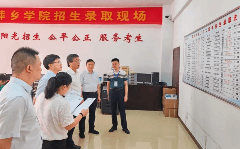 在招生录取现场,校党委书记邱晓辉、校长刘林芽听取了学校2024年招生录取工作总体进展和江西省本科录取情况汇报,详细了解了录取工作的时间节点和各环节操作流程,对学校2024年招生工作给予肯定。