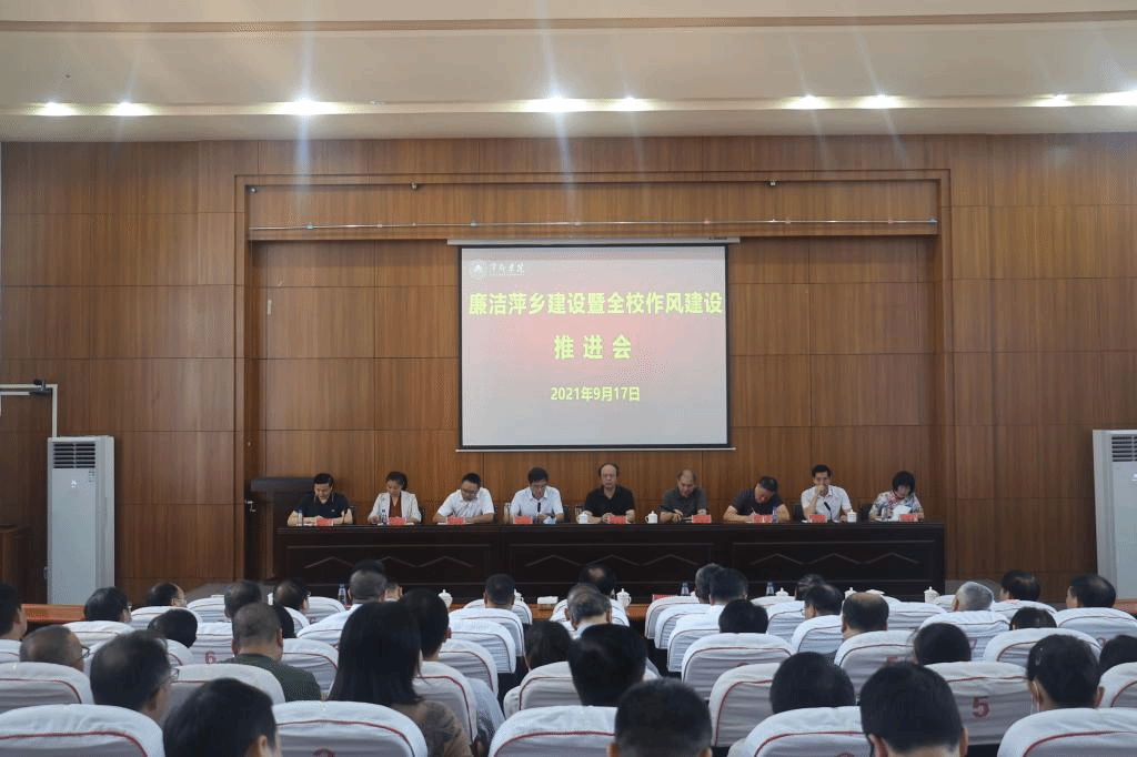 9月17日,beat365官网在至善楼学术报告厅召开廉洁萍乡建设暨全校作风建设推进会。全体在家校领导、校副处级以上领导干部、正高级职称教师参加会议。会议由校党委书记陈金印主持。