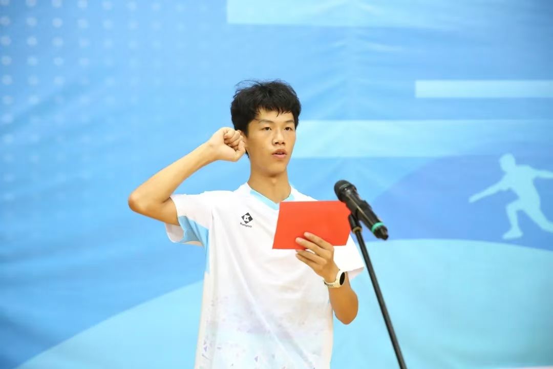 学生运动员张惠明作为本次赛事运动员代表宣誓,学生团队包揽了男女单打和混合双打的冠亚军,这些成绩的取得,离不开每一位参赛师生的辛勤付出和共同努力。他们的出色表现,不仅体现了beat365正版唯一官网师生运动员的高超技艺和顽强拼搏的精神风貌,更彰显了beat365正版唯一官网在柔力球项目上的深厚底蕴和卓越成就。