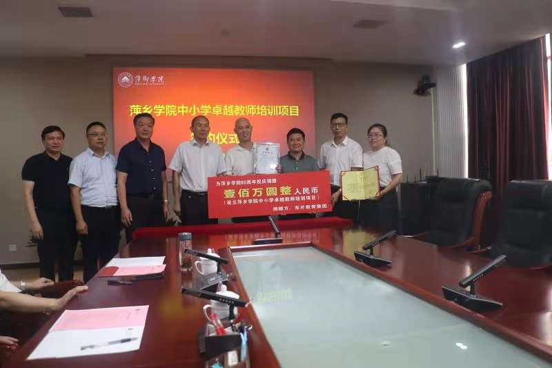 捐赠仪式上,史焕平代表学校与深圳东升教育集团签订《beat365正版唯一官网中小学卓越教师公益培训项目协议》并为深圳东升教育集团颁发捐赠证书。