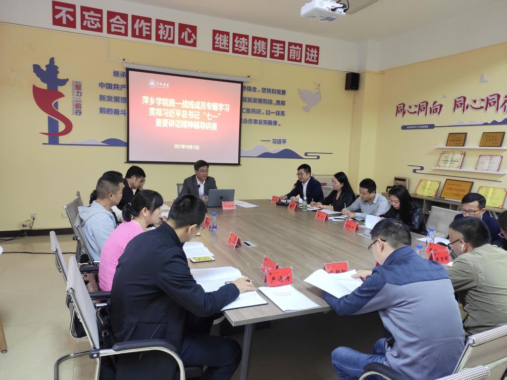 10月12日,beat365官网在党外知识分子之家举办统一战线成员专题学习贯彻习近平总书记“七一”重要讲话精神辅导讲座。校党委副书记邱晓辉就深入学习贯彻习近平总书记“七一”重要讲话精神作专题辅导报告,全校各民主党派、统战社团负责人以及主要成员参加学习。讲座由党委统战部部长王林清主持。