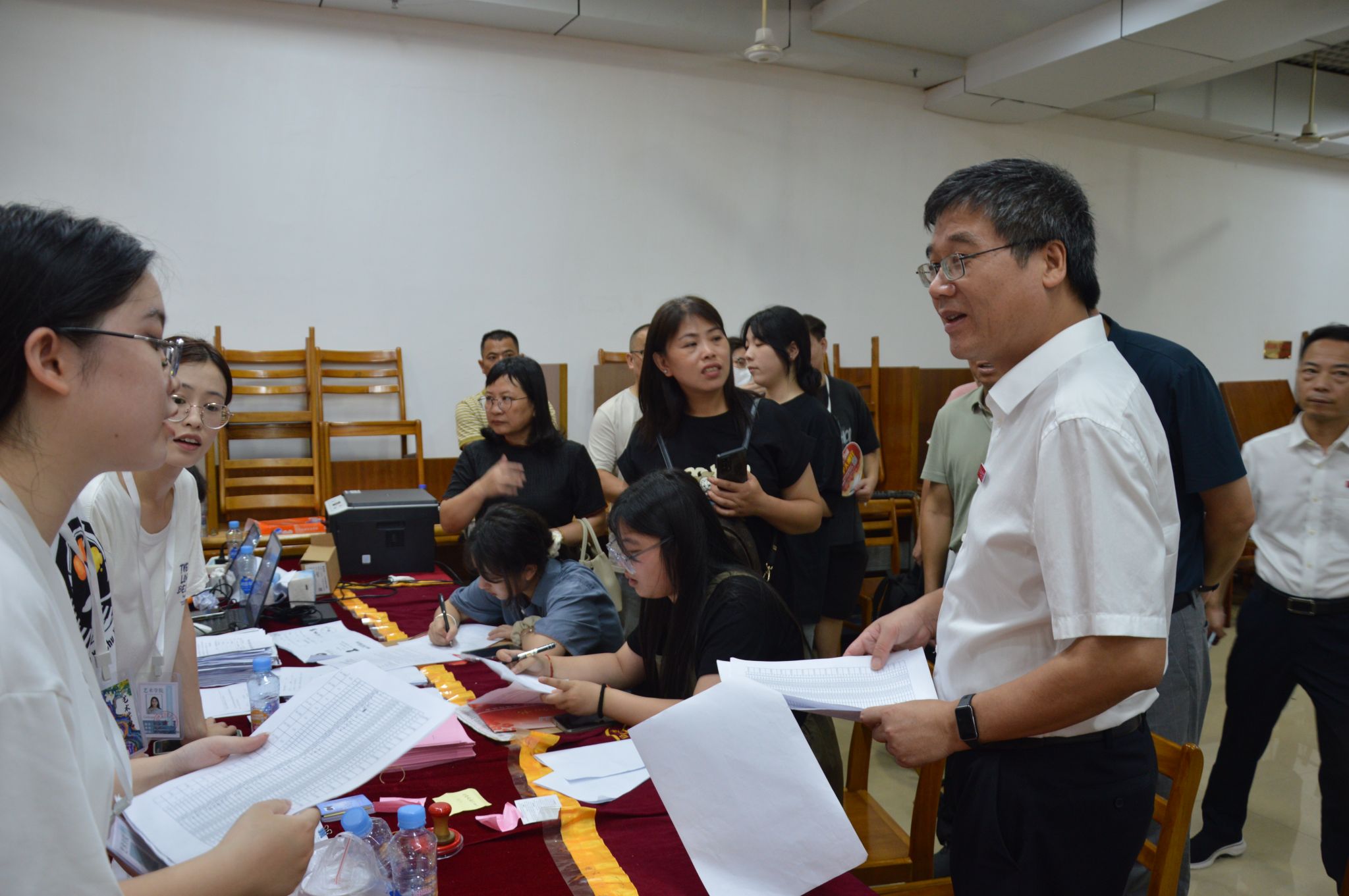 党委书记邱晓辉带队党政领导班子一行深入学校检查新生入学报到工作,详细了解迎新情况,慰问参与迎新工作的师生员工和志愿者。